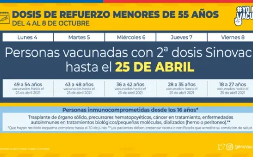 Personas entre 18 y 55 años, vacunadas con segunda dosis de Sinovac hasta el 25 de abril.