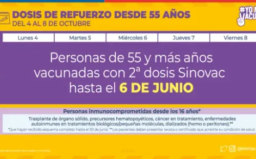 Personas mayores de 55 años, vacunadas con segunda dosis de Sinovac hasta el 6 de junio.