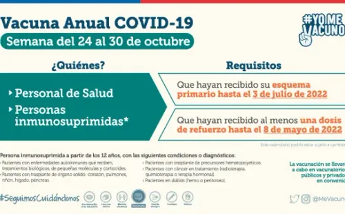 Se podrán vacunar quienes hayan completado suesquema primario hasta el 2 de juliode 2022 o que hayan recibido al menosuna dosis de refuerzo hasta el 8de mayode 2022.