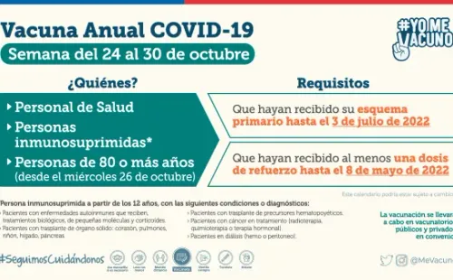Se podrán vacunar quienes hayan completado suesquema primario hasta el 2 de juliode 2022 o que hayan recibido al menosuna dosis de refuerzo hasta el 8de mayode 2022.