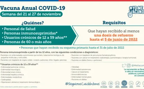Se podrán vacunar quienes hayan completado suesquema primario hasta el 31de juliode 2022 o que hayan recibido al menosuna dosis de refuerzo hasta el 5 de junio de 2022.