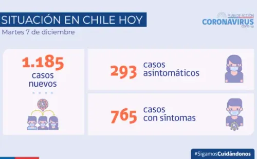 Unnuevoinformesobre laactualidad de lapandemiaen Chile,se publicóeste 7de diciembrepor parte delMinisterio de Saludqueinformó una leve baja en loscasos deCovid,con 207menosque el martes anterior.