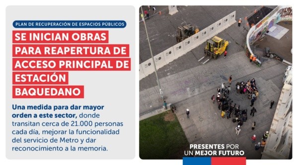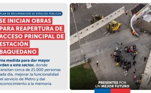 A más de tres años del inicio del estallido social, el Gobierno le dio el ‘vamos’ al inicio de las obras para reabrir el acceso principal de la Estación Baquedano del Metro por Plaza Italia, que permanecía cerrado desde el 18 de octubre del 2019, ya que servía como punto de encuentro de las multitudinarias manifestaciones.