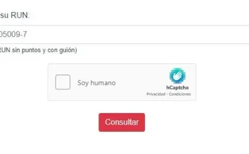 Una vez dentro, escribe tu RUT sin puntos y con guion, rellena la casilla “Soy humano” y haz clic en “Consultar”.