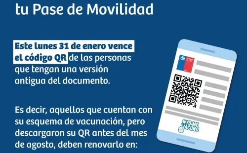 Una de las medidas implementadas es el Pase de Movilidad, documento para personas vacunadas con primera, segunda y tercera dosis de refuerzo. Este lunes deberán renovar el documento quienes lo hayan obtenido antes de agosto 2021, en el sitio web Mevacuno.gob.cl.