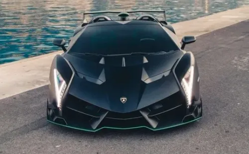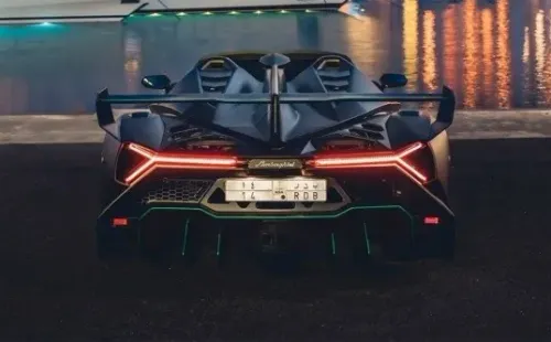 Este Lamborghini que costó cinco millones de euros es un descapotable de formas angulares y cuenta con un motor V12 de 6,5 litros de aspiración natural y con 750 caballos de fuerza.