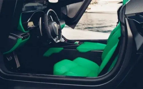 Además, tiene una impresionante entrada de aire, que se conecta con un imponente alerón que sirve para mantener pegado al suelo el auto cuando acelera de 0 a 100 en 2,9 segundos o cuando alcanza la velocidad máxima de 355 km/h.