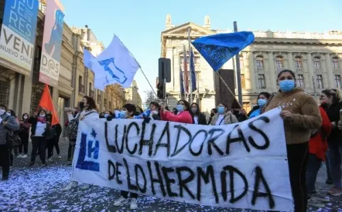 Durante la jornada matutina de este martes se llevan a cabo dos manifestaciones paralelas en el perímetro del ex Congreso Nacional, donde se encuentra sesionando la Convención Constitucional.