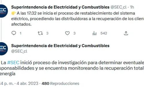 De acuerdo con el Coordinador Eléctrico Nacional, la situación fue producto de “una interrupción del suministro eléctrico en diversos sectores del Sistema Eléctrico Nacional a raíz de la apertura de los dos circuitos de la Línea 500 kV Changos – Cumbres“.