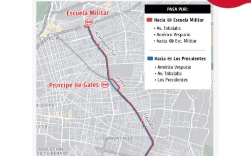 - Hacia Escuela Militar: Avenida Tobalaba, Avenida Américo Vespucio y Escuela Militar.