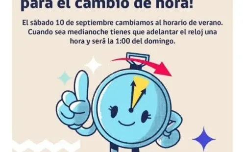 El sábado 10 de septiembrees el cambio de hora ylos relojes se deberánadelantar una hora.