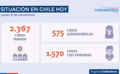 Este lunes el Ministerio de Salud informó un nuevo balance diario, donde se registraron2.367 nuevos contagios, un 31% más que hace siete días. De los casos nuevos,1.570 son sintomáticos,575 asintomáticos y222 por prestación desconocida.