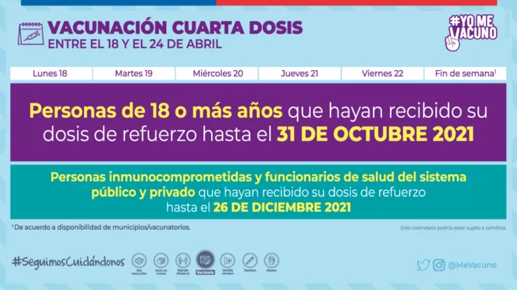 Cuarta Dosis | ¿Quiénes pueden vacunarse esta semanadel 18 al 24 de abril?