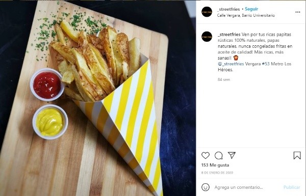 “La verdadera papa frita 100% naturales y artesanales, más sanas, más ricas” es lo que Street Fris asegura podrás encontrar en su local.