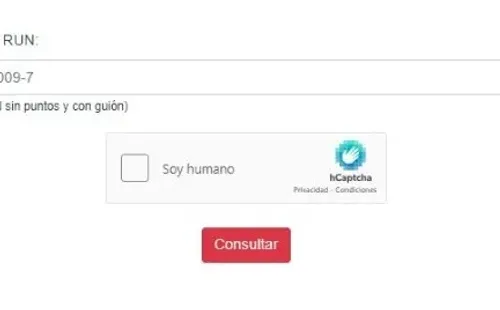 Una vez dentro, escribe tu RUT sin puntos y con guion, llena la casilla “Soy humano” y haz clic en “Consultar”.
