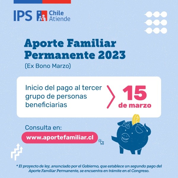 Se podrá consultar por los detalles del segundo pago –en caso de aprobarse el proyecto– a través de la página web: www.aportefamiliar.cl.