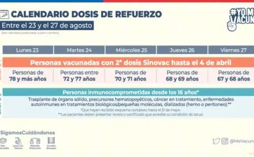 En este escenario se dio a conocer el calendario de la dosis de refuerzo para las semanas del 23 de agosto y del 30 de agosto y en RedGol te contamos los detalles del proceso de vacunación.
