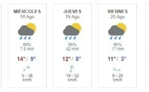 El viernes y el sábado serán los días con las temperaturas más bajas, las cuales podrían llegar a una mínima de 2 °C.