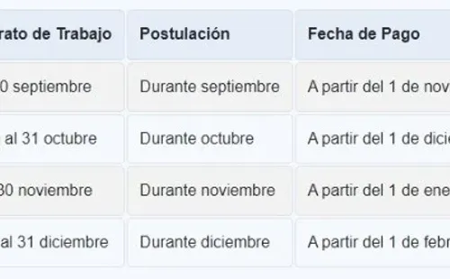 La fecha exacta de postulación, al igual que la fecha de pago, dependerán de cuando se firme el nuevo contrato, como se indica en el siguiente cuadro:
