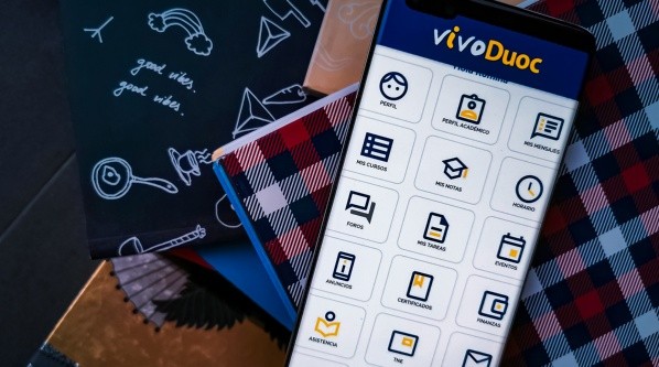El Duoc también tiene su aplicación. Se trata de Vivo Duoc, la que brinda servicios como revisión de horario, de asistencia y de notas; plataforma de pago y emisión de certificados, entre muchos otros.