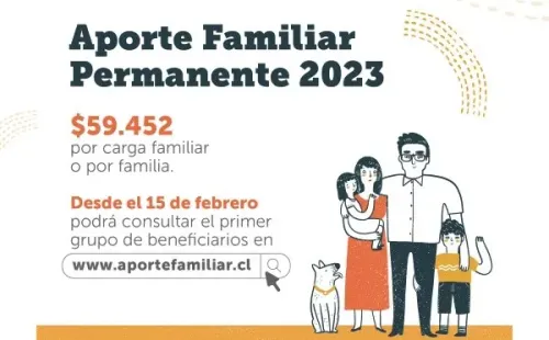 Al Aporte Familiar Permanente no se debe postular, ya que se gestiona el pago automáticamente a quienes cumplen con los requisitos, que son: tener asignación familiar o maternal o Subsidio Familiar, reciben un aporte por carga familiar o causante; o pertenecer a alguno de los programas de Subsistema de Seguridades y Oportunidades o de Chile Solidario, quienes reciben un pago por familia.