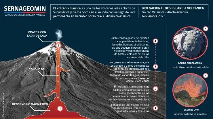 Actualmente dos volcanes de Chile se encuentran en Alerta Amarilla, el Volcán Villarrica y el Complejo Volcánico Nevados de Chillán.