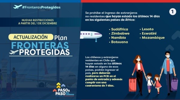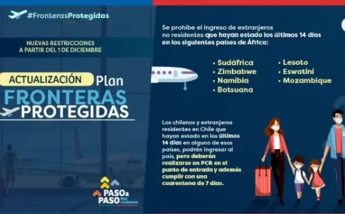 No podrán ingresar al país aquellos extranjeros que no tienen residencia en Chile y que tuvieron pasos por Sudáfrica, Zimbabwe, Namibia, Botsuana, Lesoto, Eswatini y Mozambique en los últimos 14 días.