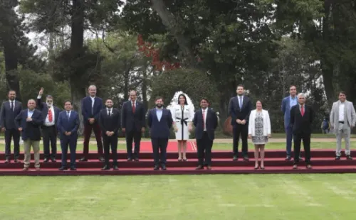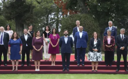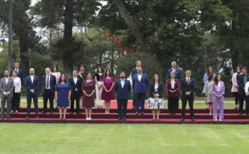 El presidente electo, Gabriel Boric se tomó la fotografía oficial con los Gobernadores Regionales y sus futuros Ministros de Estado en el Palacio Presidencial de Cerro Castillo.