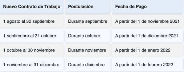 En el caso específico del mes de octubre, podrán postular todas las personas que hayan comenzado un nuevo empleo entre el 1 de septimebre y el 31 de octubre.