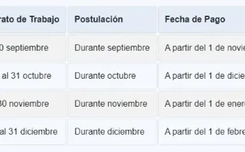 Para solicitar el beneficio necesitarás tu Clave Única. Ten presente que la fecha exacta de postulación dependerá de cuando se firme el nuevo contrato, como se muestra en el siguiente cuadro: