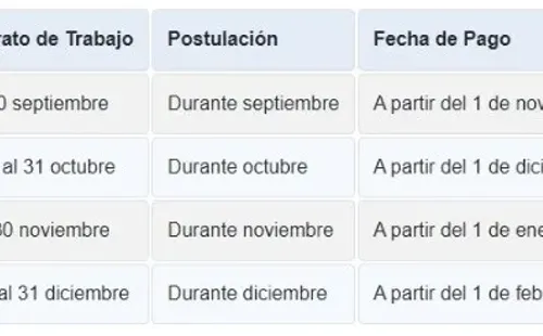 La fecha de postulación dependerá de cuándo se firme el nuevo contrato, mientras que la fecha de pago depende del mes en que se postule.
