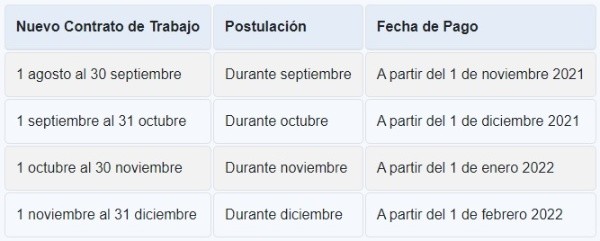 Las postulaciones estarán disponibles hasta diciembre. Sin embargo, la fecha exacta de postulación depende de la fecha en que se firmó el nuevo contrato, como se detalla a continuación: