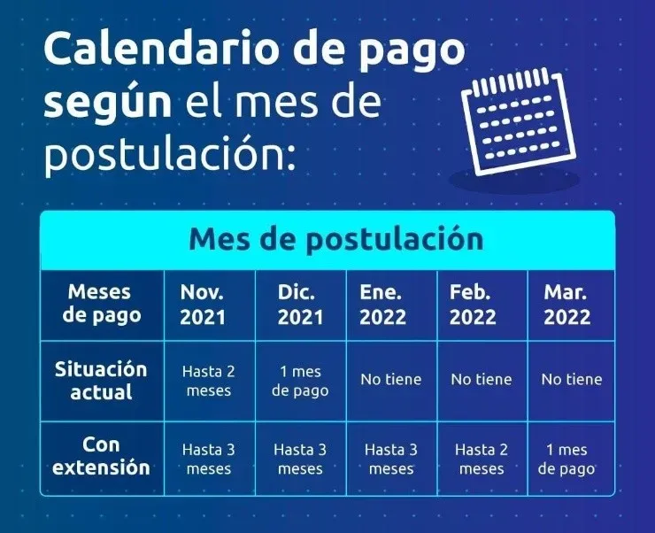 - Postulación en diciembre: reciben tres pagos (el último en abril 2022).