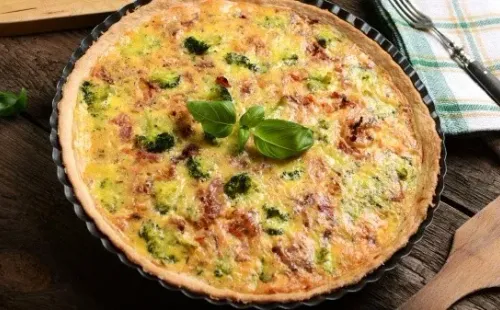 Mezcla huevo batido, queso rallado y vegetales de tu elección como espinaca, brócoli, cebolla y champiñones. Hornea en una masa de tarta.