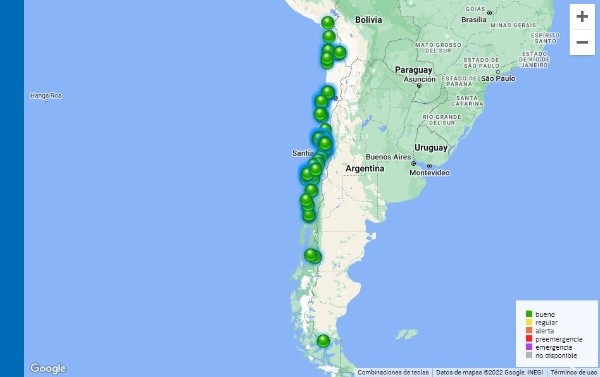 Una vez dentro, encontrarás un mapa con todas las estaciones conectadas y podrás revisar los niveles: Bueno, regular, alerta, preemergencia y emergencia.