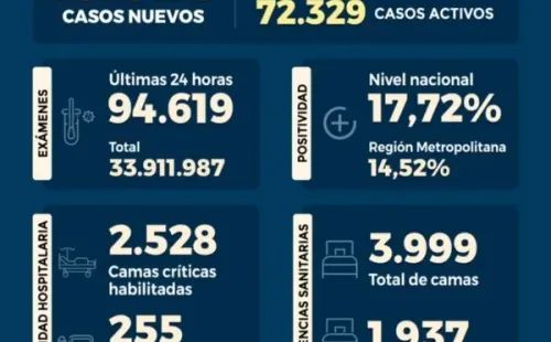 A solo momentos del Cambio de Mando en Chile, el Ministerio de Salud entregó el informe diario, donde se notificó que hay18.326 casos nuevos y72.329 casos activos de coronavirus en las últimas 24 horas en Chile.
