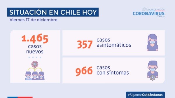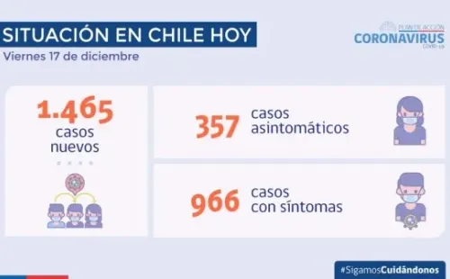 Para este 17 de diciembre el Minsal reportó el análisis de70.021 exámenes tanto de PCR como de Antígenos, lo que marca una positividad diaria del 1,9% en todo Chile, 1% en la Región Metropolitana y2,11 semanal.