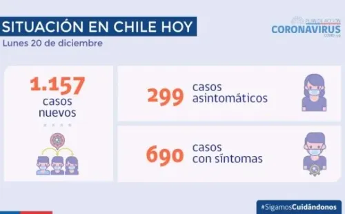 Para este 20 de diciembre el Minsal reportó el análisis de58.651 exámenes tanto de PCR como de Antígenos, lo que marca una positividad diaria del 1,79% en todo Chile, 1% en la Región Metropolitana y 1,92% semanal.