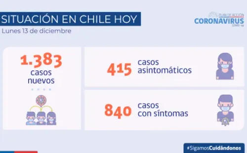 Este lunes se informaron1.383 casos diarios y9.249 casos activos de coronavirus en el país. Esto representa 134 casos diarios y 2.031 casos activos menos que hace siete días.