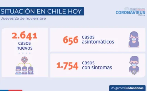 Poco a poco bajan los contagios en Chile y este viernes el Ministerio de Salud informó que hay2.641 casos diarios y14.393 casos activos de coronavirus en el país.