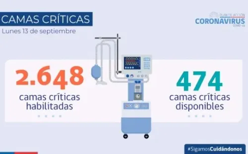 En cuanto a la red hospitalaria, este lunes el Minsal informó que hay 2.648 camas críticas en la red, de las cuales, 2.174 se encuentran ocupadas y quedan 474 disponibles, lo que indica una hospitalización UCI del 82%.