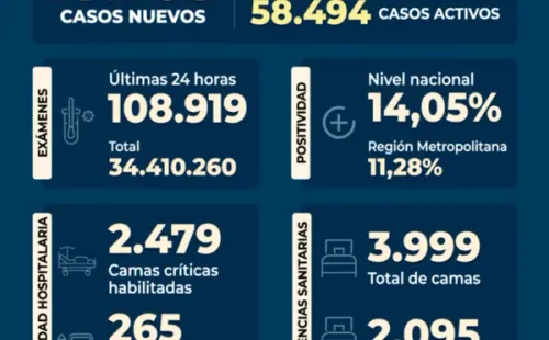 Para esta jornada se informó la toma de 108.919 exámentes tanto de PCR como de Antígenos, dando una positividad diaria del 14,05%. Por su parte, la positividad en la Región Metropolitana llegó al 11,28%.