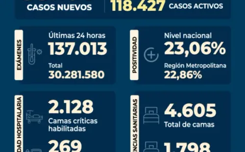 Este jueves el covid-19 marcó un nuevo récord, superando la barrera de 30.000 nuevos casos. El Ministerio de Salud informó que se detectaron35.197 casos diarios y118.426 casos activos en las últimas 24 horas.
