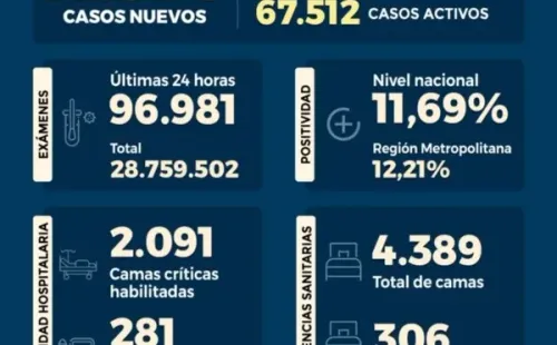 Los más de 12 mil casos diarios fueron identificados en el análisis de 96.981 exámenes tanto de PCR como de antígenos, marcando una positividad diaria del 11.69% y del 12,21% en la Región Metropolitana.