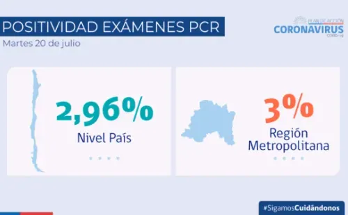 Estos casi mil contagios diarios se detectaron en el análisis de29.021 exámenes, lo que entrega una positividad del 2,96%. Lo anterior representa una caída en los contagios del 29,45% en siete días.