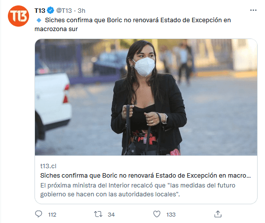 La futura Ministra del Interior, Izkia Siches, ratificó que en el futuro gobierno de Boric no se renovará el Estado de Excepción Constitucional en la macrozona sur.