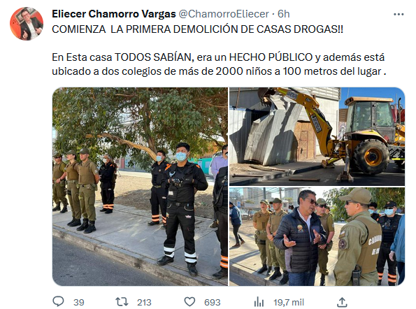 Con polémica instalada sobre la demolición de las “narco casas” en La Florida, la medida es mirada con buenos ojos en otras partes del país y, desde este lunes, una de las ciudades más relevantes de la zona norte replicó el derrumbe de ampliaciones no reguladas en viviendas de narcotraficantes.