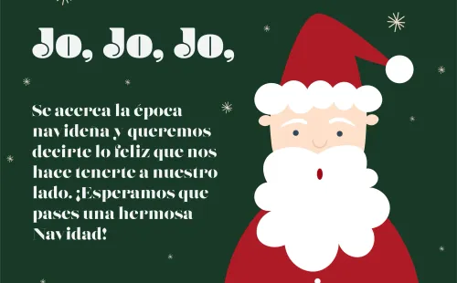 - “¡Jo, Jo, Jo! Se acerca la época navideña y queremos decirte lo feliz que nos hace tenerte a nuestro lado. ¡Esperamos que pases una hermosa Navidad!”.