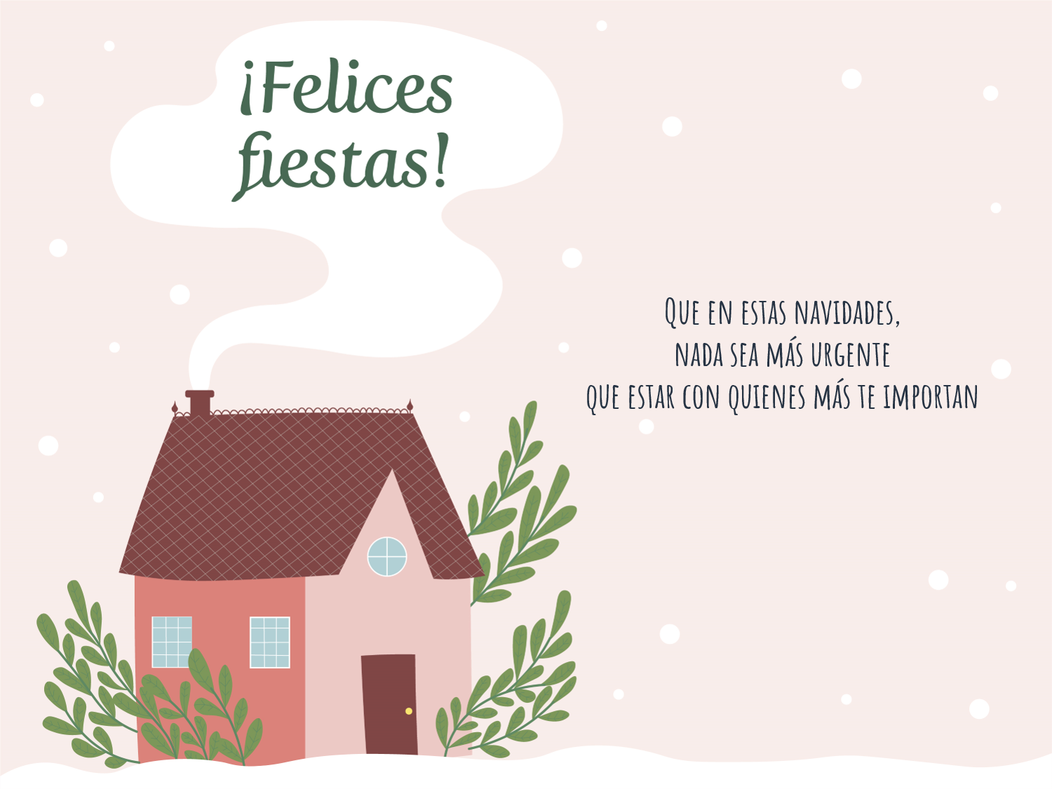 - “¡Felices fiestas! Que en estas Navidades, nada sea más urgente que estar con quienes más te importan”.
