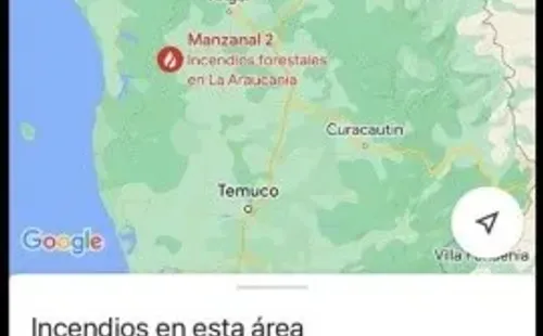 Mediante Google Maps se puede ver todos los incendios forestales que afectan al sur de Chile plasmados en un mapa. Esto es de mucha ayuda para quienes deben viajar, de forma que se mantengan informados sobre el estado del siniestro.